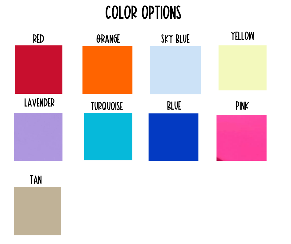 Custom colors can be requested!