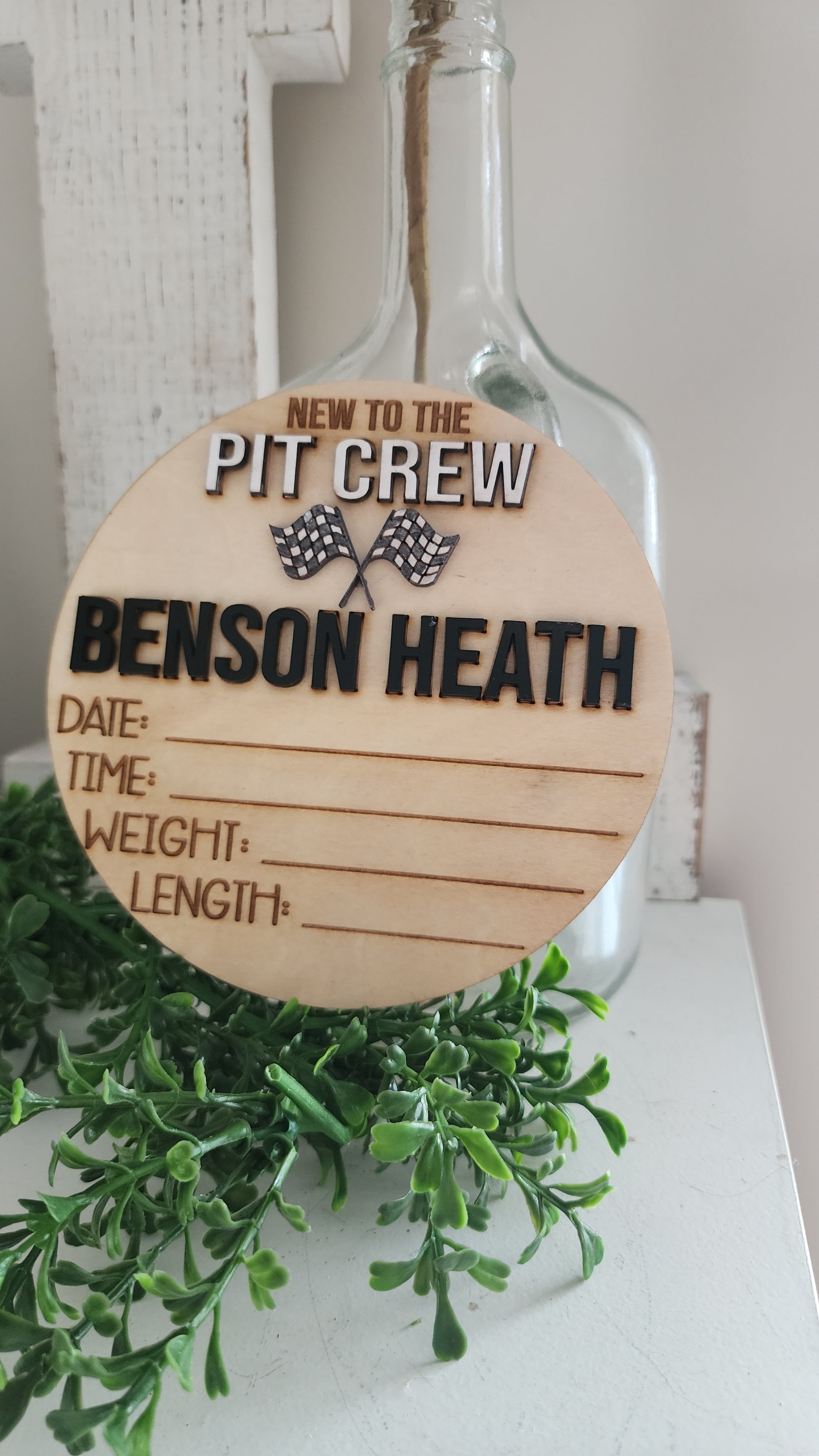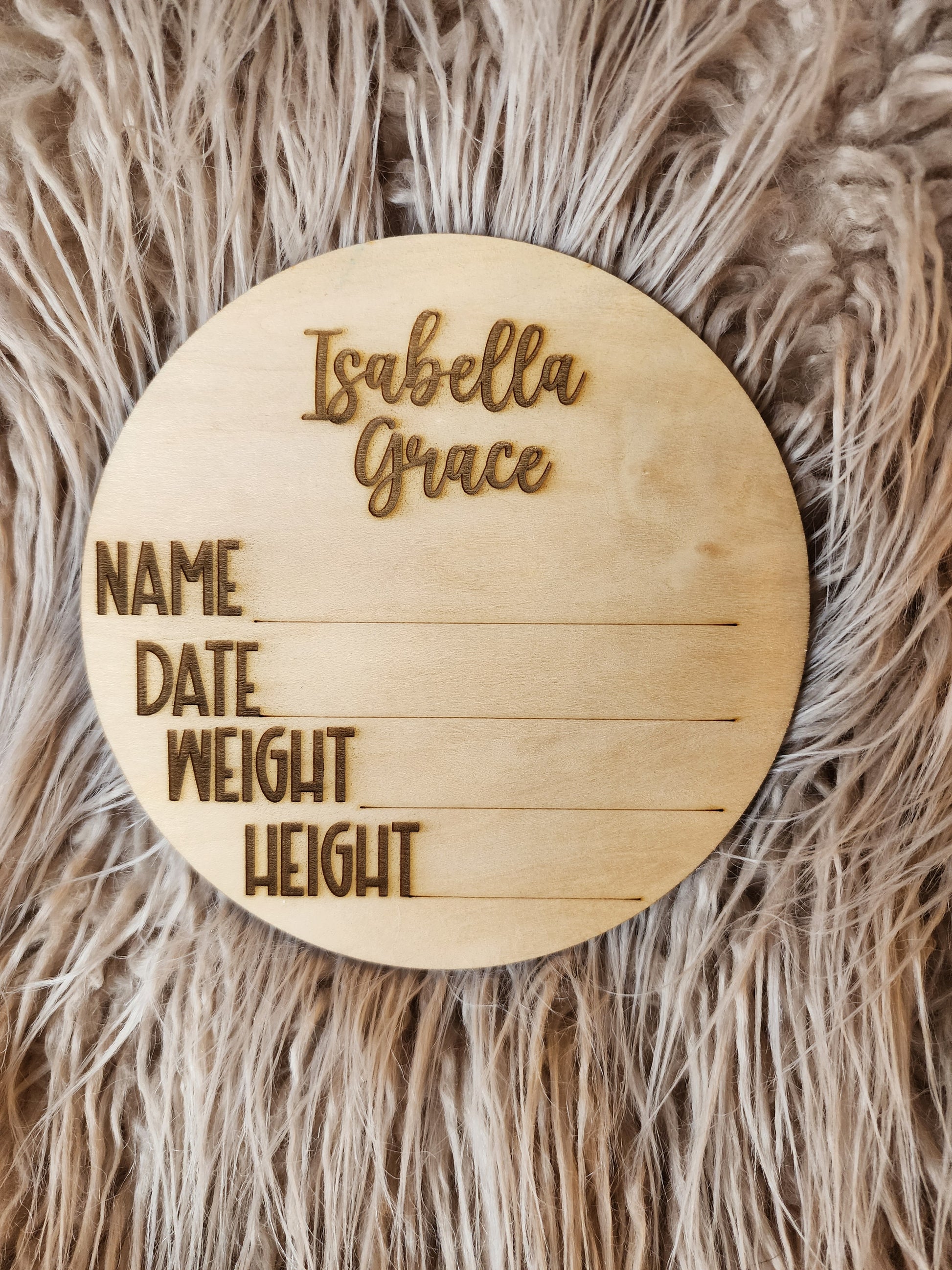 Our custom wood birth announcement plaques make a very special gift for mom and dad to be! These signs can be used to quickly and easily take a photo of your newborn baby in the hospital documenting their birthday. Once you've shared the baby announcement with your friends and family you can save the engraved wood disc in your baby book or use as nursery