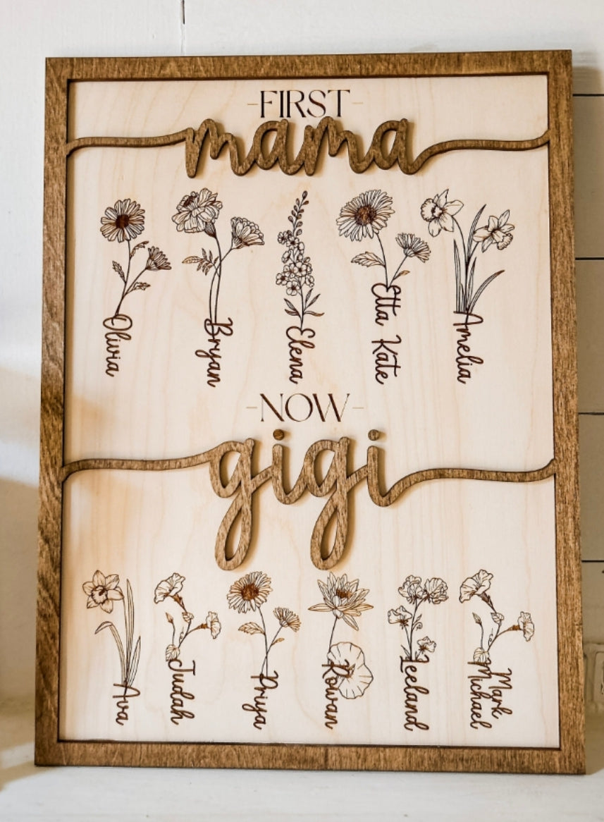 This lightweight Customized Birth Month Flower sign is the perfect Mother's Day gift for mom or grandma! You choose your favorite flower(s) from the birth flower chart and any name can be added!
