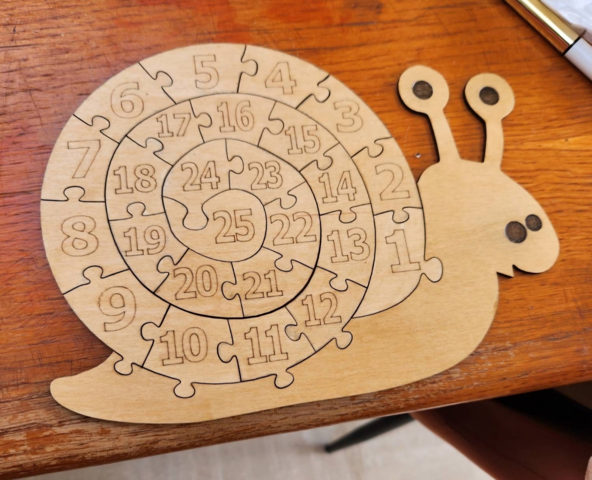 This numbers learning puzzle for kids can be used to teach counting and numbers. Make your own Montessori snail puzzle with this laser cut toy file. This Montessori inspired puzzle is an entertaining and educational game for all ages. It adheres to the Montessori way of learning and development.