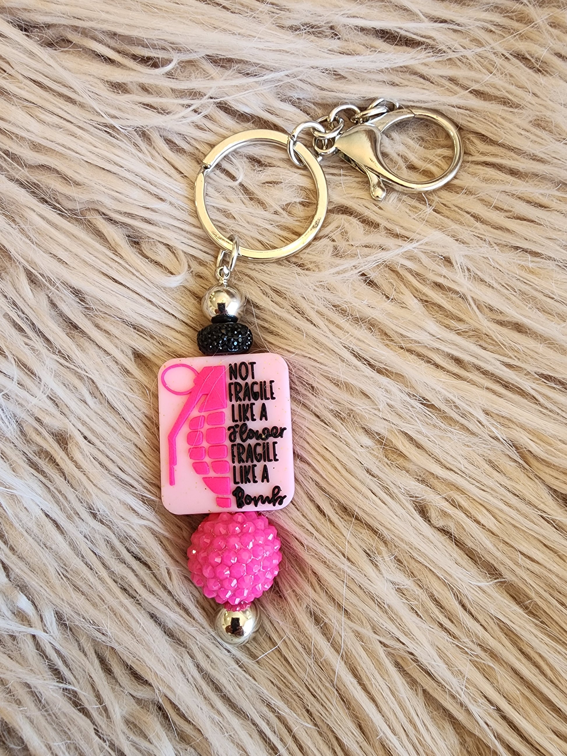 These KEYCHAINS are so trendy! They come as pictured a clip, beaded accent charm and a keyring so you can attach your keys to these! Can also be used as a purse charm.
