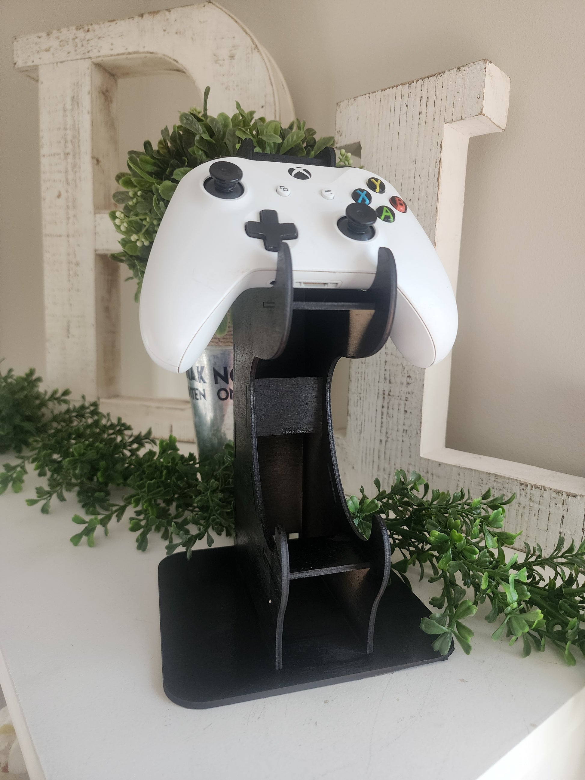 For those who crave a little extra functionality, our second design goes a step further. In addition to holding two game controllers, it features a convenient headphone stand at the top, ensuring that your gaming accessories are always within reach.